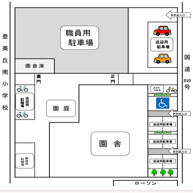 行事の際は駐車場は駐輪場に変わりますので、送迎以外の駐車は禁止しています。